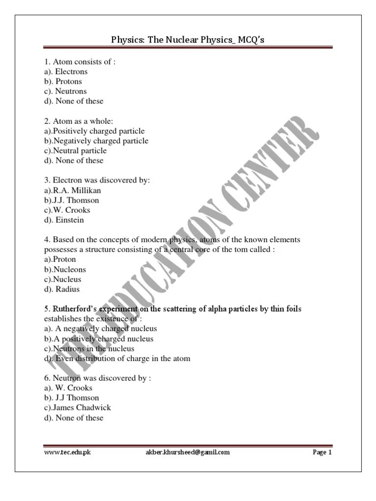 Atom Mcq Vynikající. All of the following were theorized by bohr in his description of the atom except. Download these free structure of atom mcq quiz pdf and prepare for your upcoming exams like ssc, railway, upsc, state psc. The letters sp d and f are used to represent which quantum numbers.